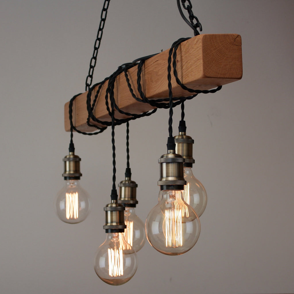 Handmade Rustic Wooden Chandelier - Wood Beam Industrial Pendant Lamp